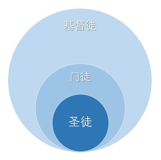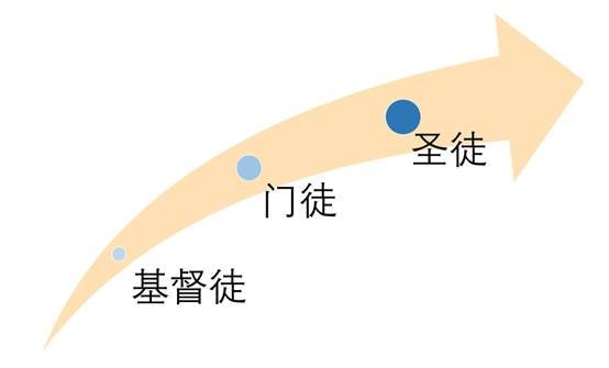 从基督徒到门徒,再到圣徒,三者的属灵生命逐级强壮,对上帝的奉献也越来越彻底,与基督的关系也越来越亲密,成为一个属灵生命成长的序列。