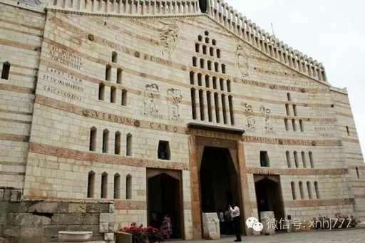 拿撒勒是耶稣长大的地方,为了纪念天使向耶稣的母亲马利亚报告耶稣出生的消息,这里建立了一座天使报喜堂。这是一座很有艺术气息的教堂,教堂的正门上的雕刻非常美丽,从这时起,我们就不断碰到类似风格的教堂,那种教堂里恬静的气氛让人平静下来。