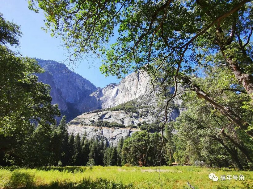 前面我就提到,美国的大树特别引人注目,到了优胜美地,这种情况已经达到了极致。到处是二三十米高的大树,长得茂盛又舒展,极其养眼。据说附近还有达到百米的红杉树,可惜我们没时间去看。