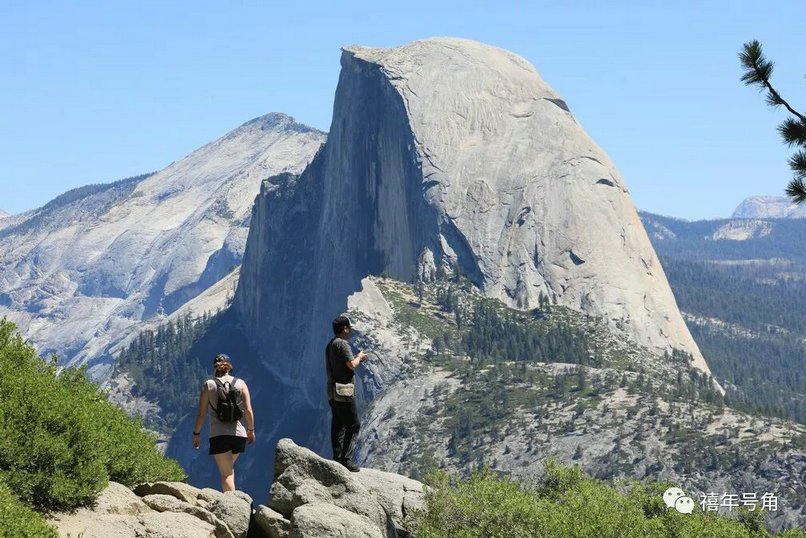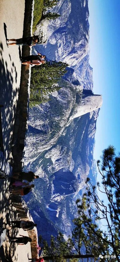 优胜美地的山,可以说非常简洁,就是一块块青色的大石头堆叠而成,其中最夸张的,一座山就是一块儿大石头,包括半圆顶和酋长岩,都是又高又大,也是一个攀岩的理想之地,我们在公园几乎就是围着半圆顶这块大石头打转转。据说在这里玩,最好的方式就是徒步,可惜舟车劳顿的我们没有了时间和精力。