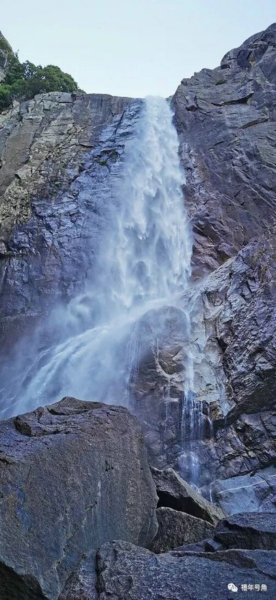 下午,我们又到了瀑布,这回美国之行,瀑布玩得够嗨,而且这回还有新花样!上下优胜美地瀑布(没错,是紧连着的两个瀑布)都不是水量很大的瀑布(季节使然,春季水量最大),但都非常高,是北美最高的瀑布之一,上瀑布高达430米,下瀑布为320米,高到风稍微大点儿,瀑布就被吹散,就像天女散花