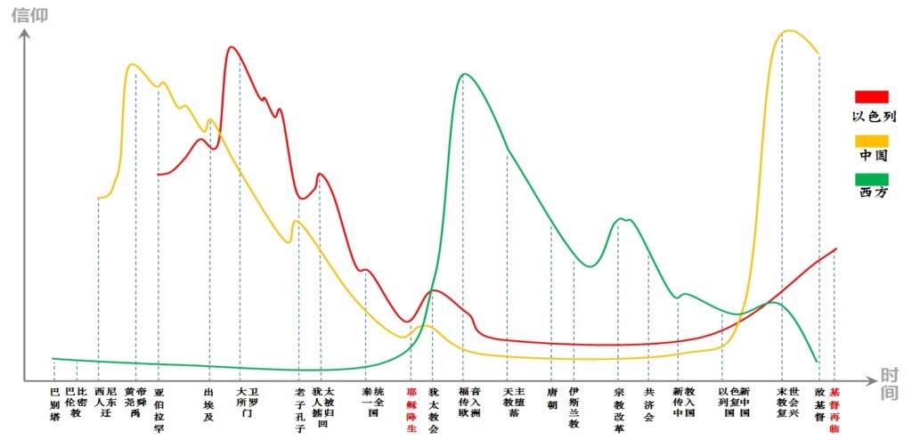 第六章提到的三大信仰系统与教会时代的预言并不冲突,两者是互补的,可以让我们看到上帝信仰在各民族中传承的全貌,如下图所示。