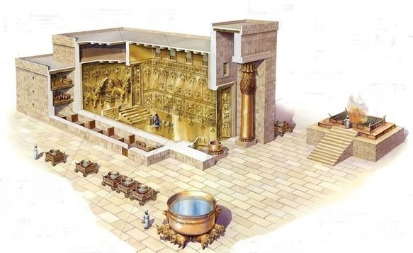 在旧约里,圣殿由人建造,但神并没有让人自由建造圣殿和耶路撒冷,设计图完全是他的,圣殿里大到一堵墙,小到一个勺子,都是按照神的吩咐所建造制作的。建会幕的时候也是如此:会幕的帐幕一切的工程就这样做完了。凡耶和华所吩咐摩西的,以色列人都照样做了。……这一切工作都是以色列人照耶和华所吩咐摩西做的。摩西看见这一切的工,看哪,耶和华怎样吩咐,他们就照样做了,摩西就为他们祝福。(出埃及记 39:32,42-43)