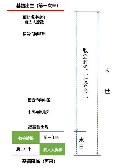 这是教会和基督徒的结局。那么,不信主的中国人会发生什么?有人说中国就是圣经《启示录》中的那条大红龙,这纯粹是无稽之谈。在教会被提走,大灾难开始以后,中国人还是会成为抵挡敌基督的重要力量,因为中国作为传统的无神论国家,与以宗教势力崛起的敌基督假先知一定不会对付,会有很大争战,虽然很可能抵挡不住,但应该还是能遏制和减缓敌基督对全世界的残酷统治,甚至会拯救一批人,主要是中国人,或许还有犹太人,保守这些人进入千禧年。神对中国恩宠,因此要延续到千禧年。